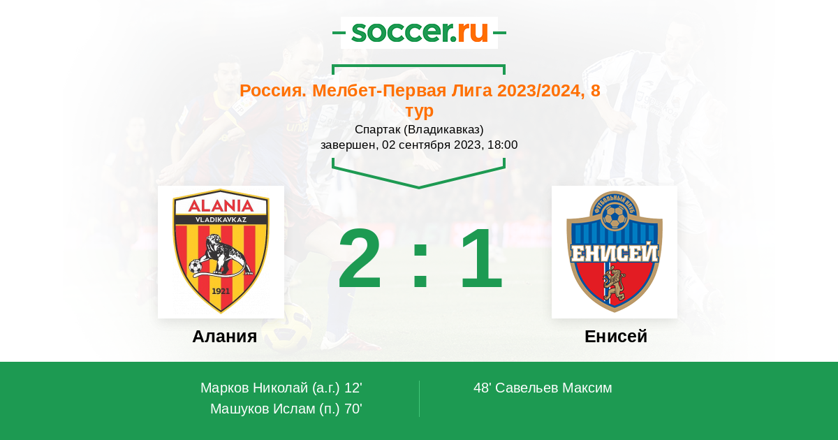 Протокол матча Алания против Енисей