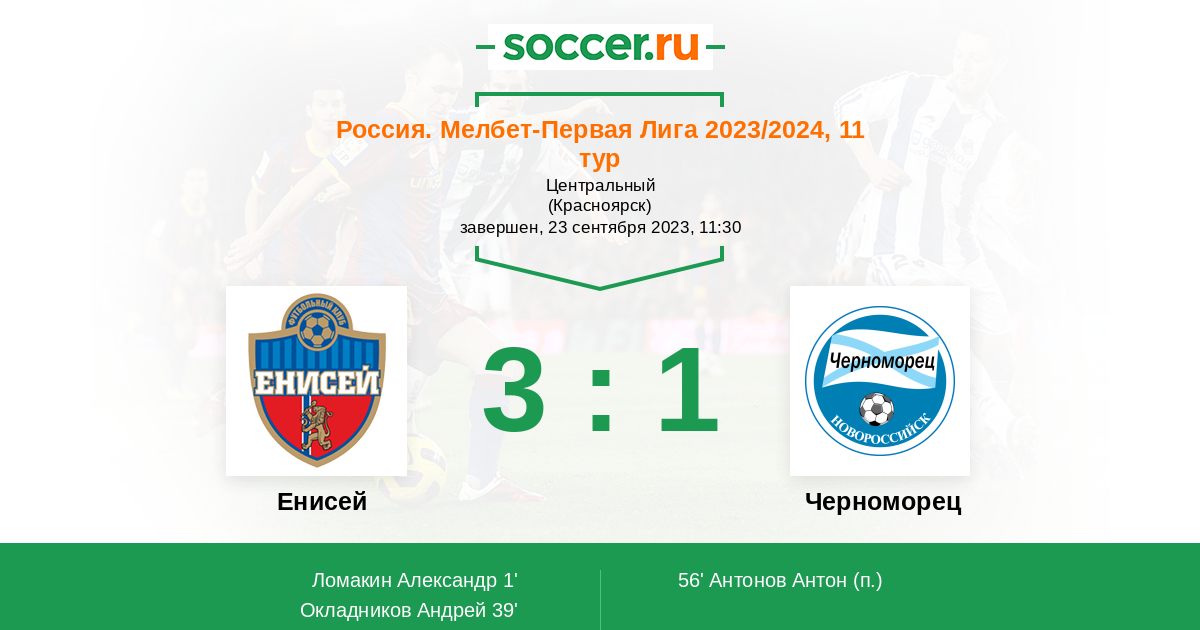 Протокол матча Енисей против Черноморец