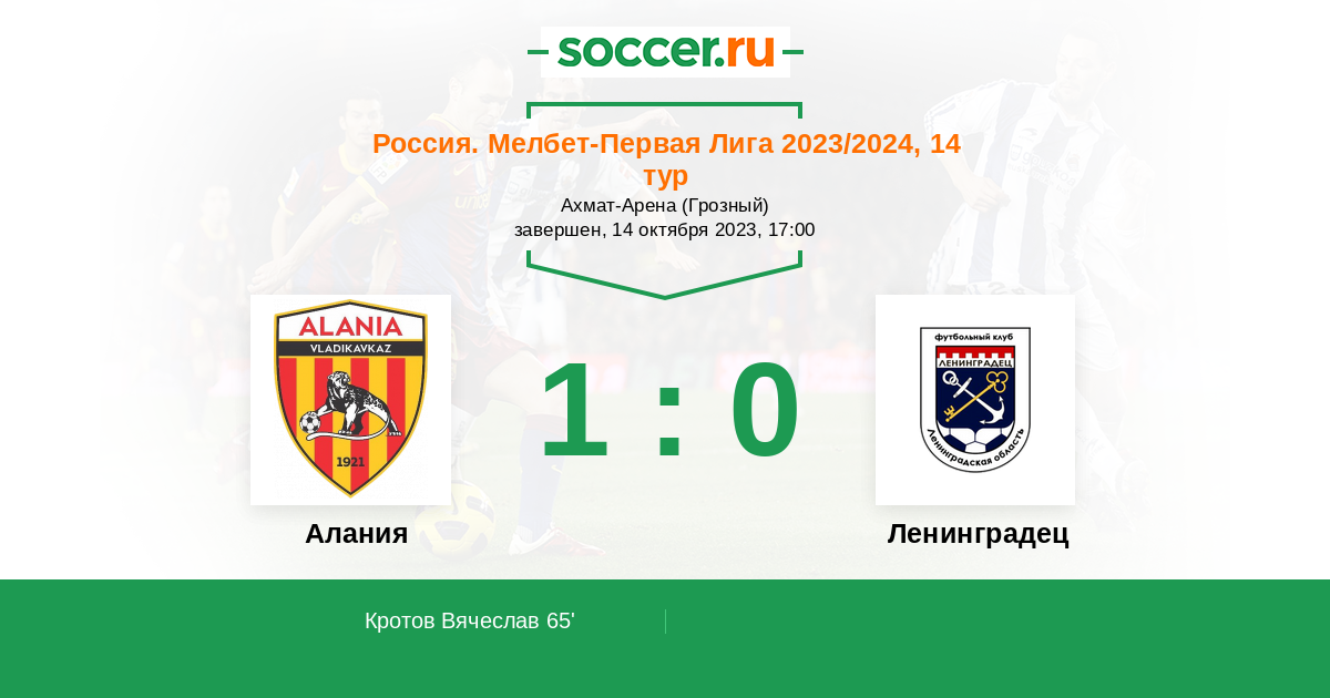 Протокол матча Алания против Ленинградец