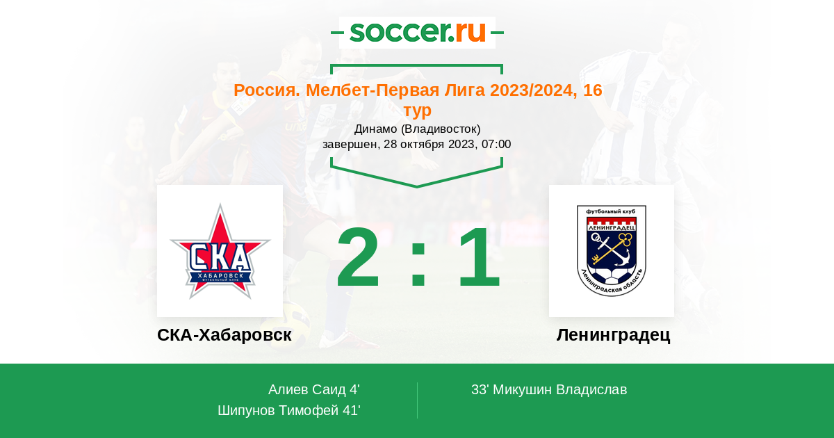 В очередном матче в российской Первой лиге между командами СКА-Хабаровск и Ленинградец смею предположить победу хозяев, потому как на их стороне преимущество своего поля, плюс огромная часовая разница во времени.