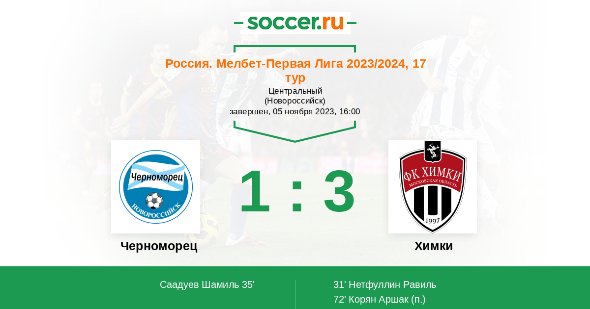 Протокол матча Черноморец против Химки