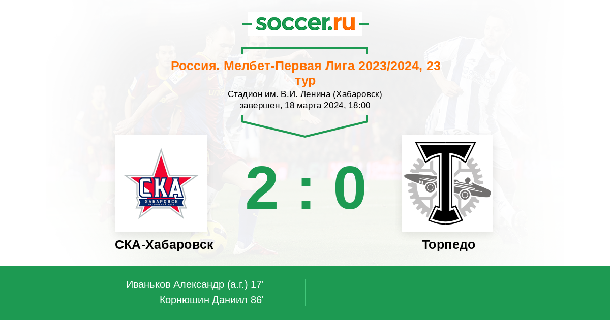 Протокол матча СКА-Хабаровск против Торпедо