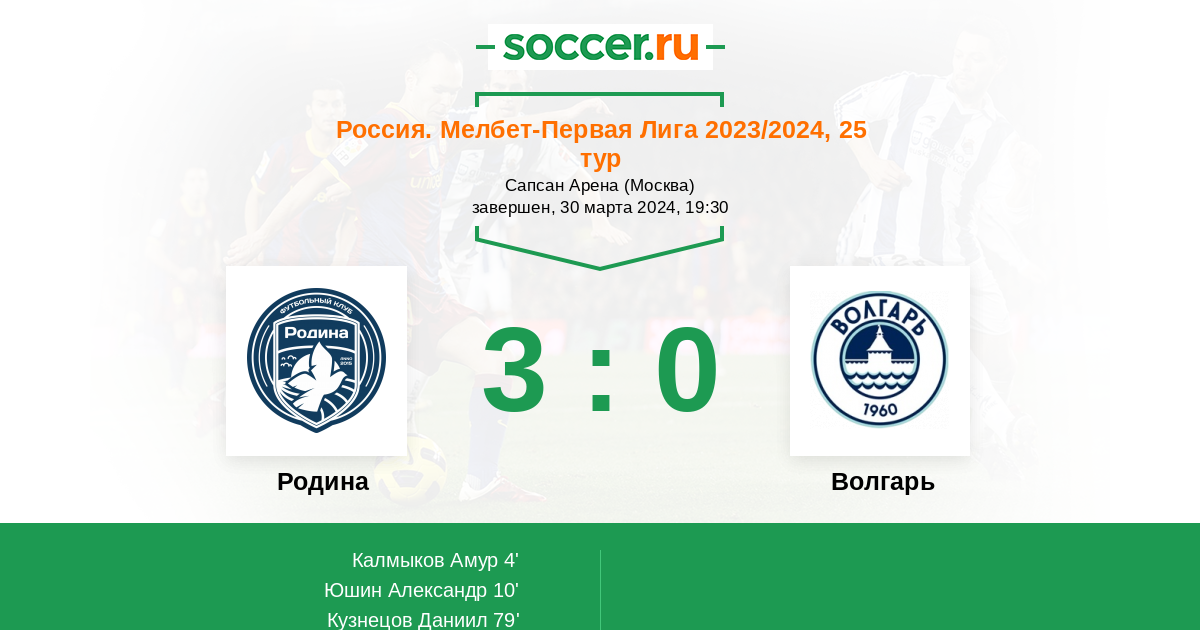 Протокол матча Родина против Волгарь