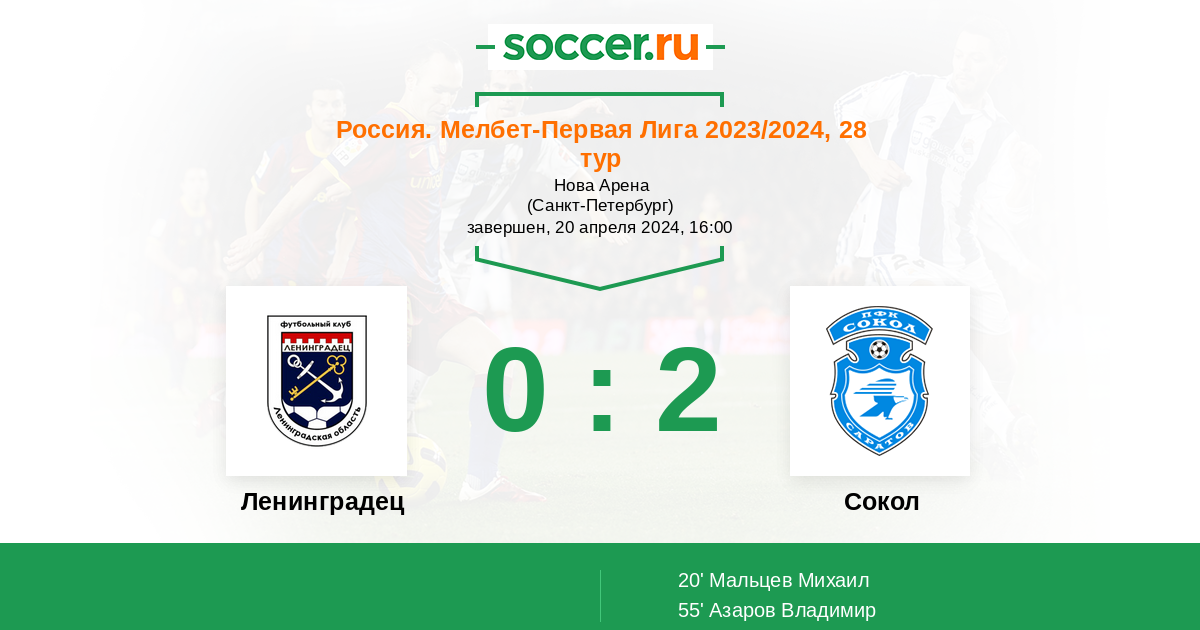 Протокол матча Ленинградец против Сокол
