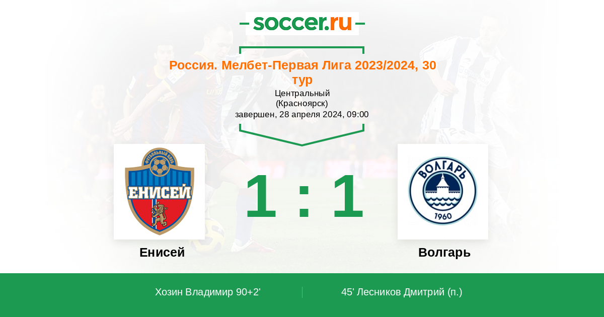 Протокол матча Енисей против Волгарь