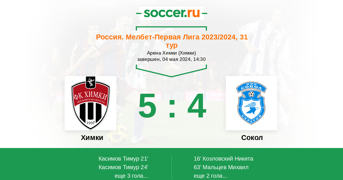 Протокол матча Химки против Сокол