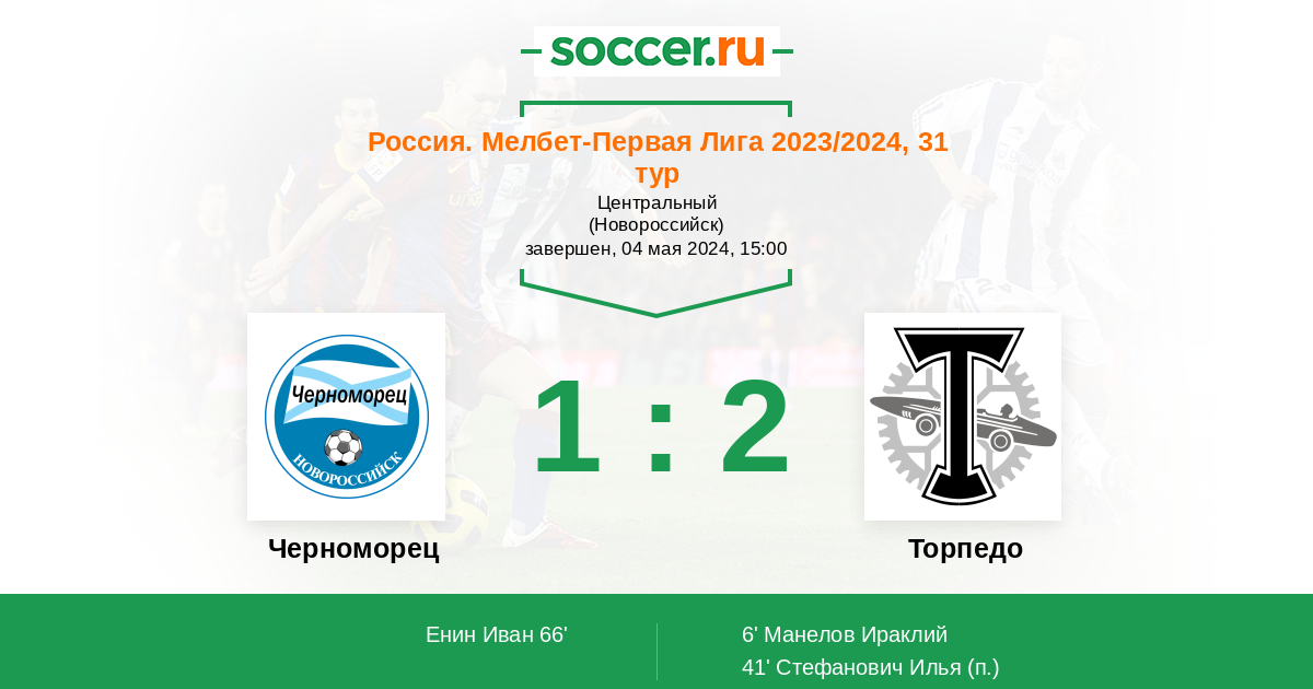 Протокол матча Черноморец против Торпедо