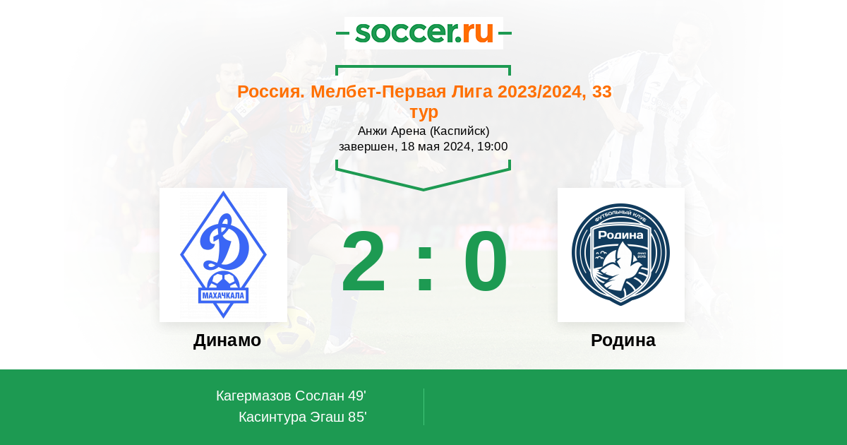 Протокол матча Динамо против Родина