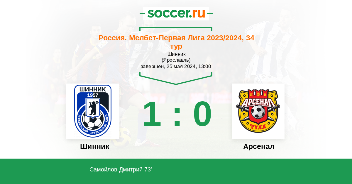 Протокол матча Шинник против Арсенал