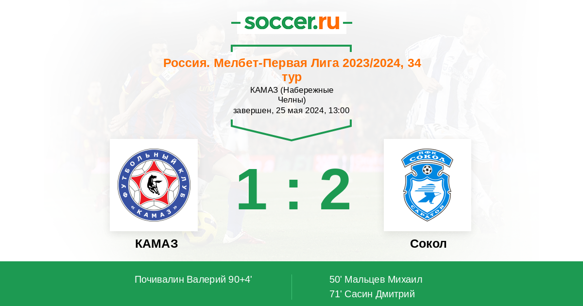 Протокол матча КАМАЗ против Сокол