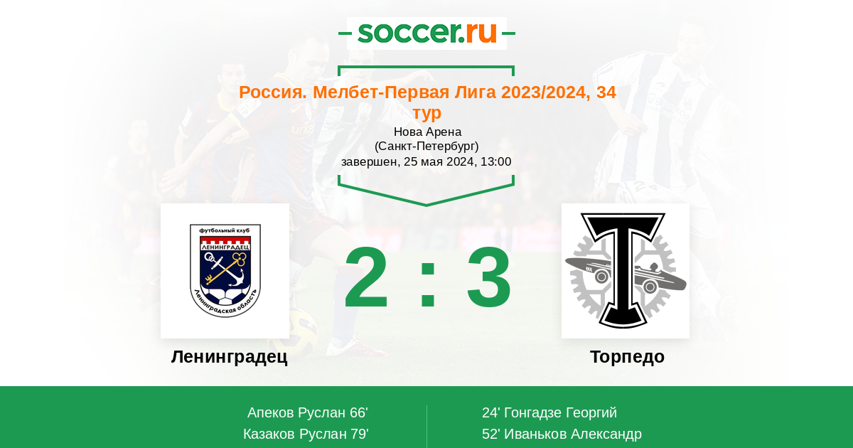 Протокол матча Ленинградец против Торпедо