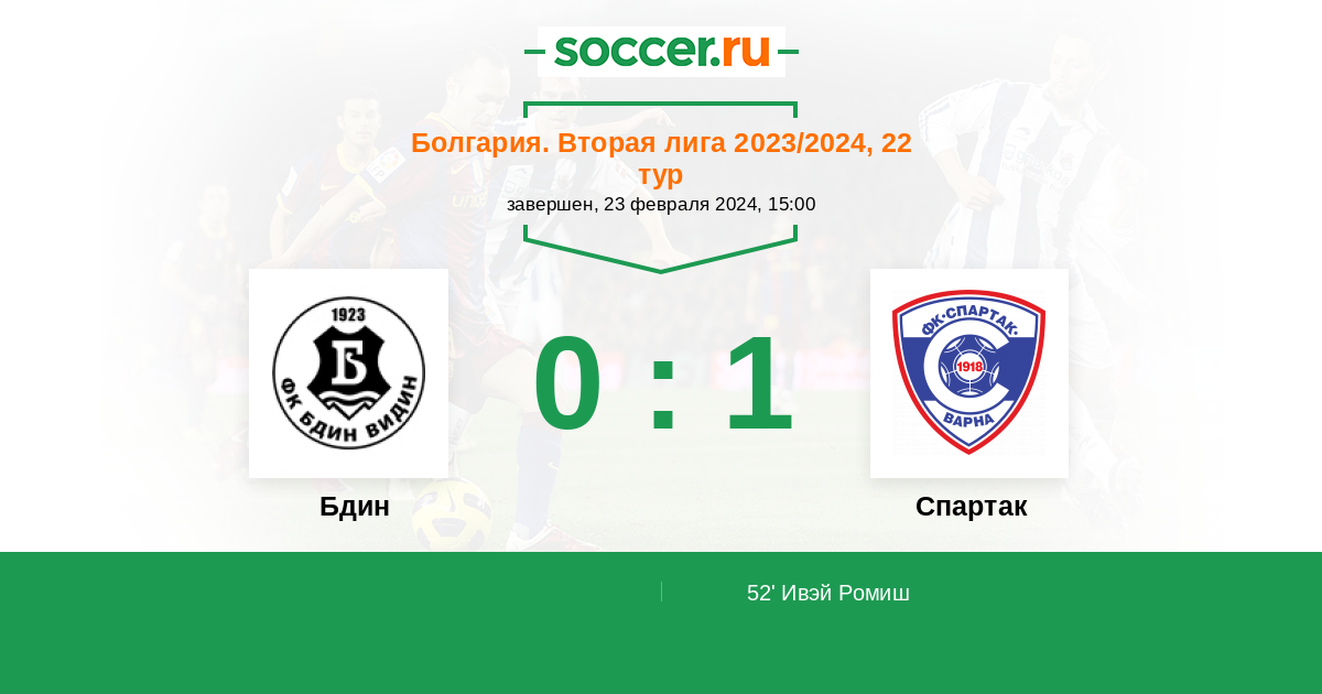 Протокол матча Бдин против Спартак