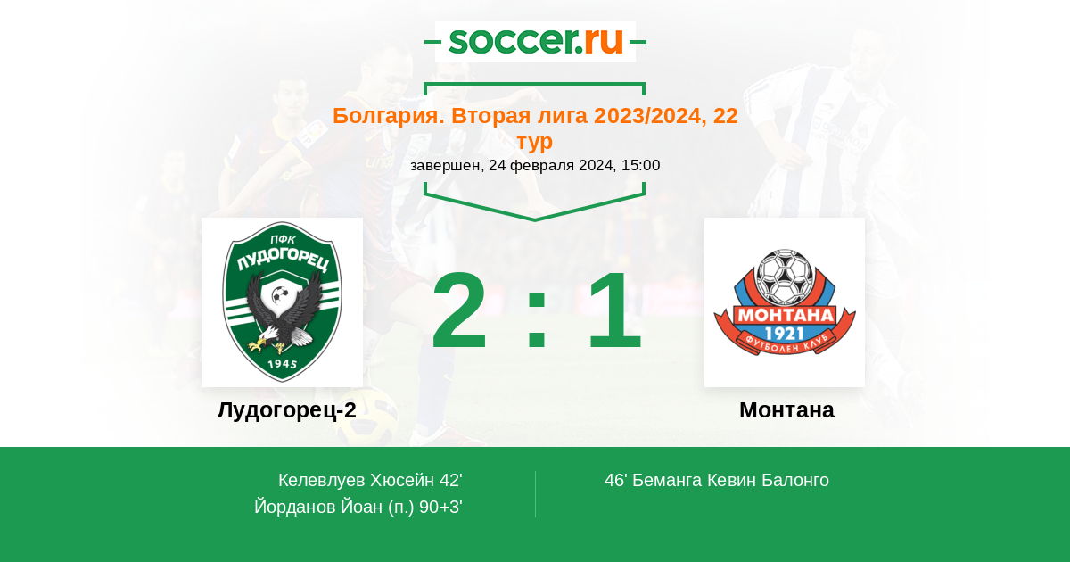Протокол матча Лудогорец-2 против Монтана