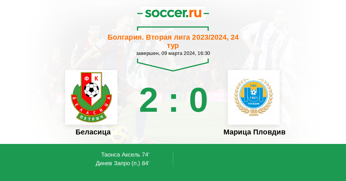 Протокол матча Беласица против Марица Пловдив