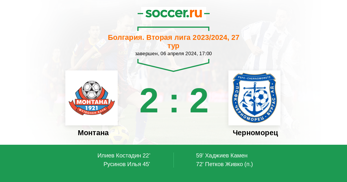 Протокол матча Монтана против Черноморец
