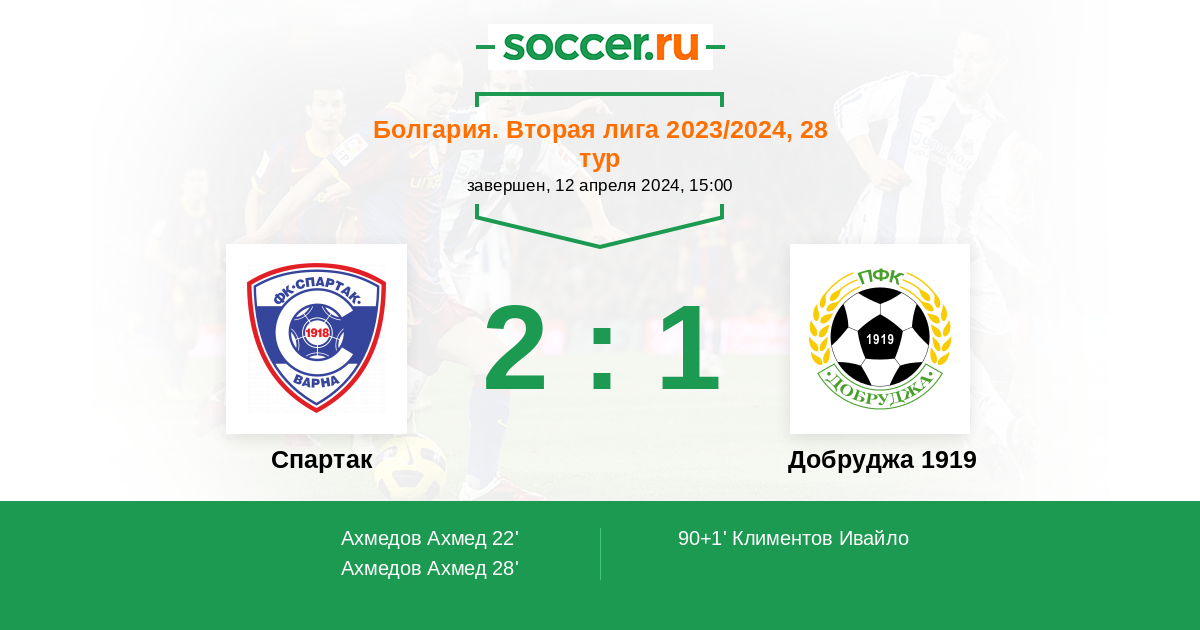 Протокол матча Спартак против Добруджа 1919