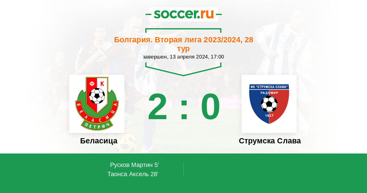 Протокол матча Беласица против Струмска Слава