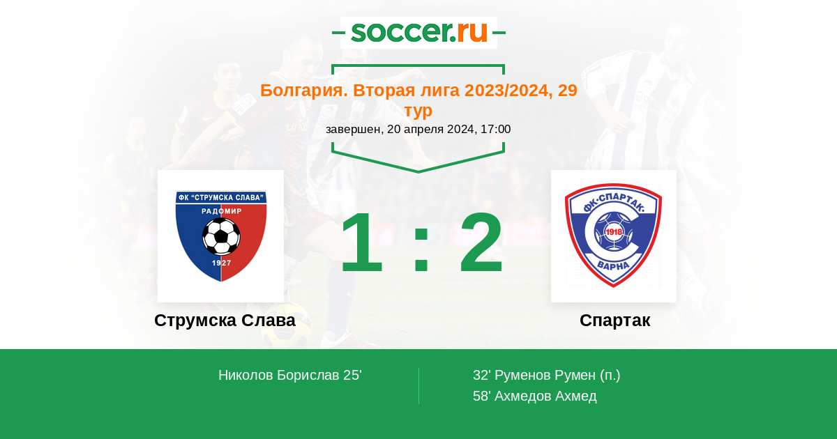 Протокол матча Струмска Слава против Спартак