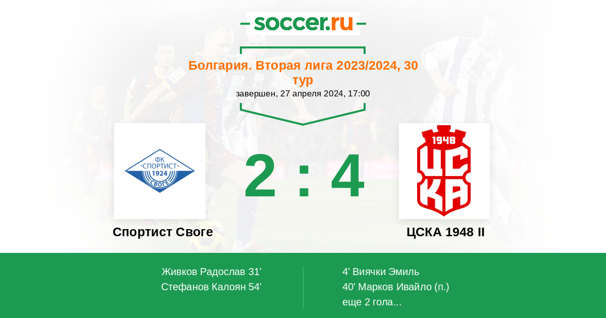 Протокол матча Спортист Своге против ЦСКА 1948 II