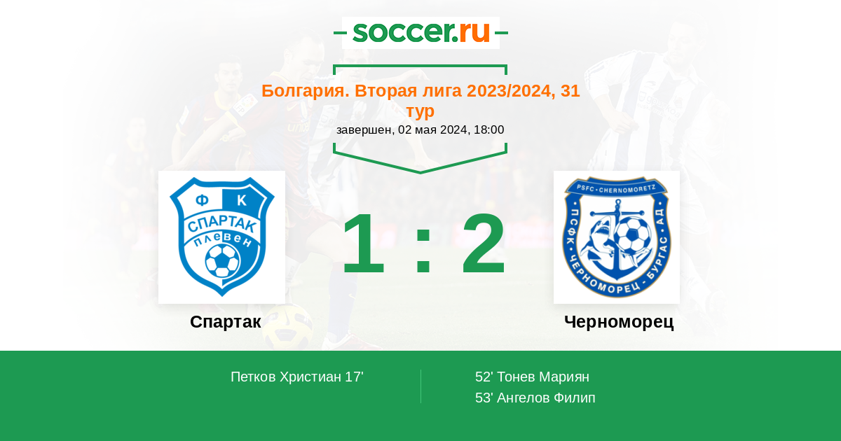 Протокол матча Спартак против Черноморец