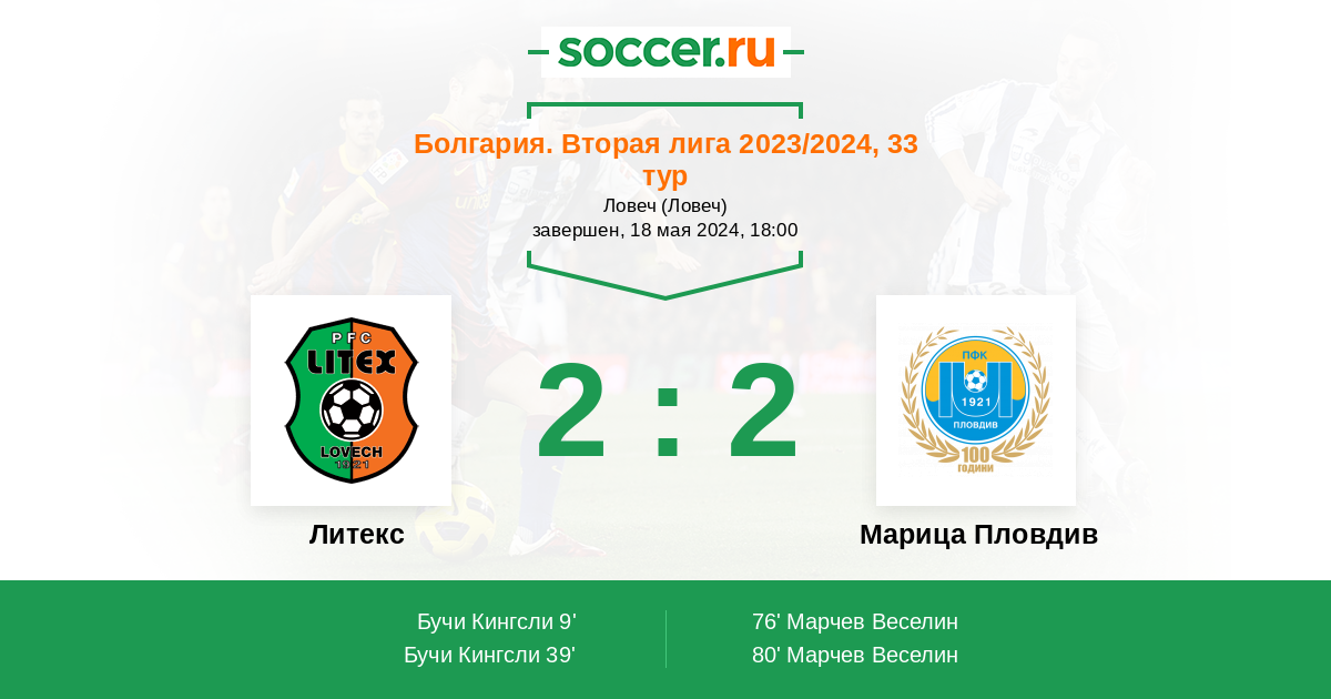 Протокол матча Литекс против Марица Пловдив