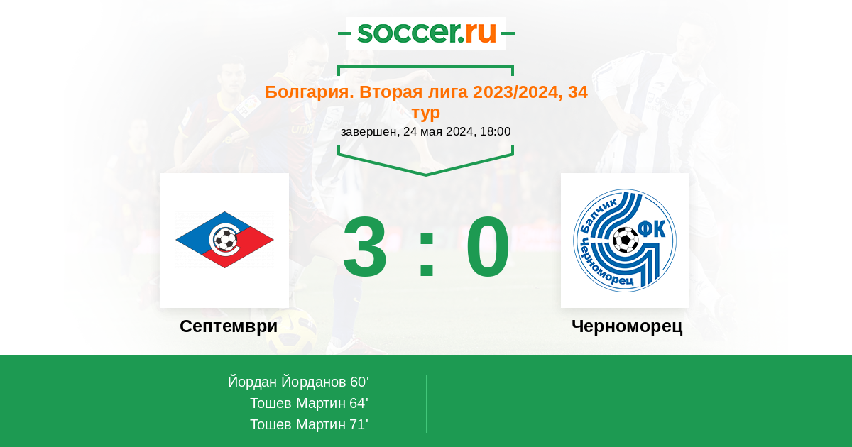 Протокол матча Септември против Черноморец