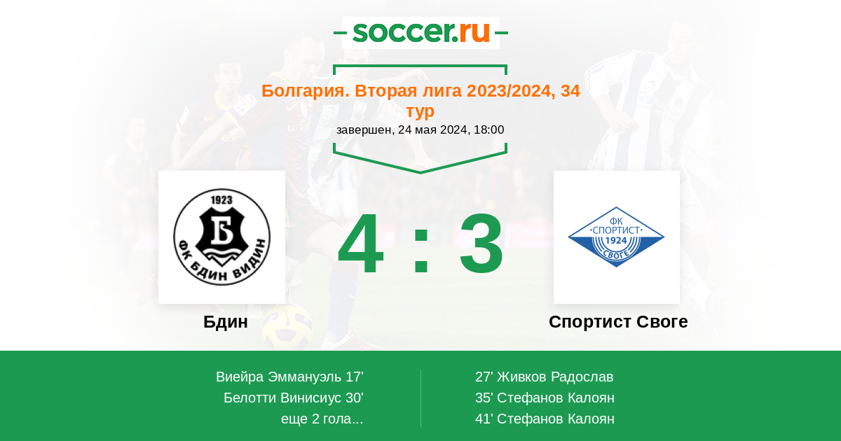 Протокол матча Бдин против Спортист Своге