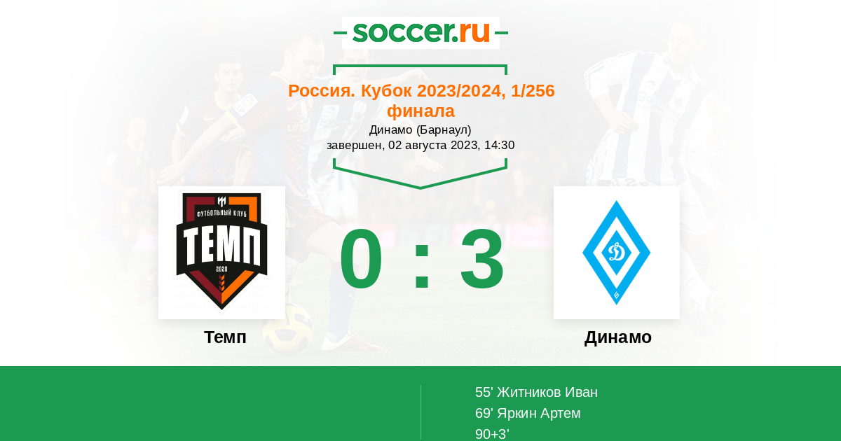 Протокол матча Темп против Динамо Барнаул