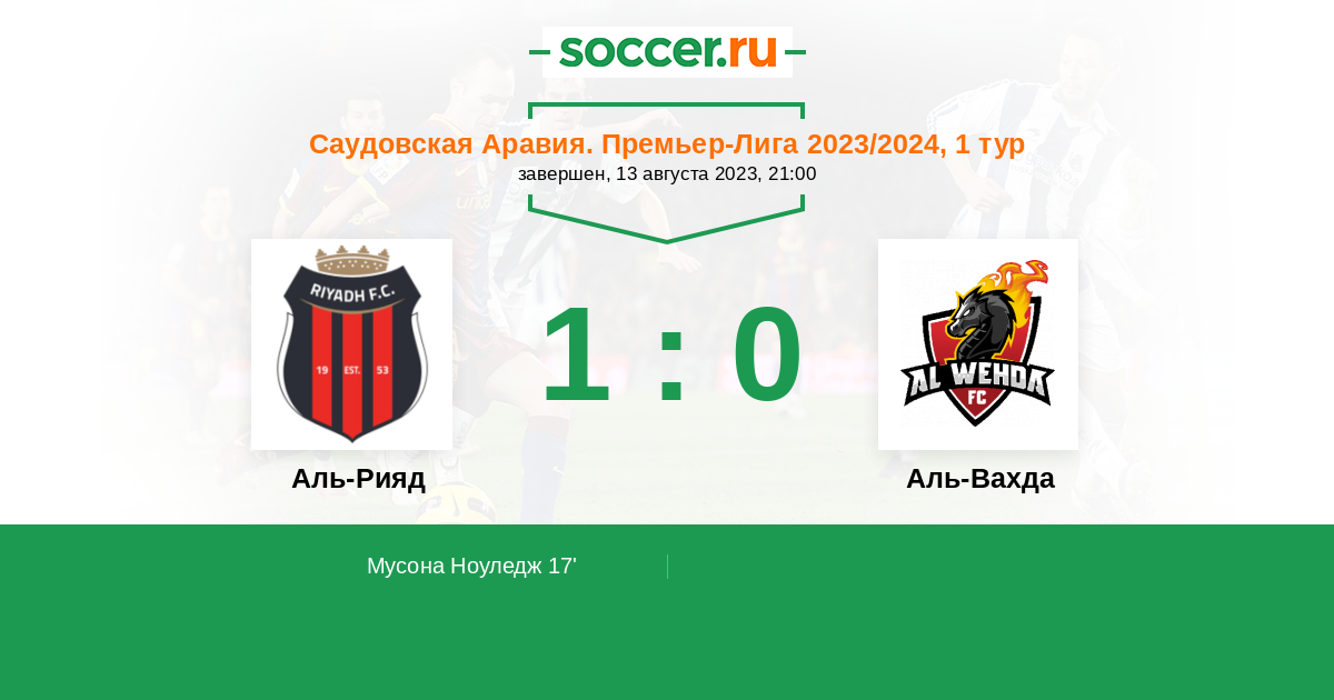 Протокол матча Аль-Рияд против Аль-Вахда