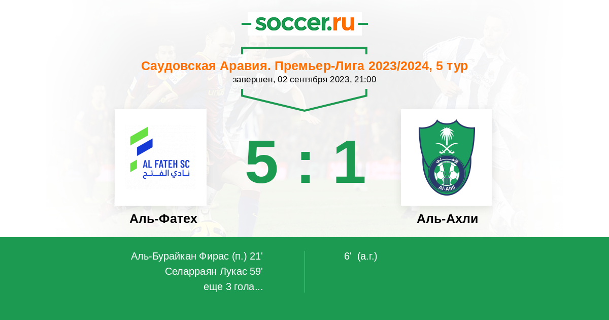 Протокол матча Аль-Фатех против Аль-Ахли