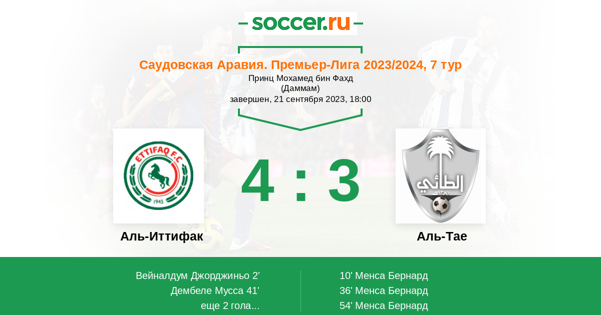Протокол матча Аль-Иттифак против Аль-Тае