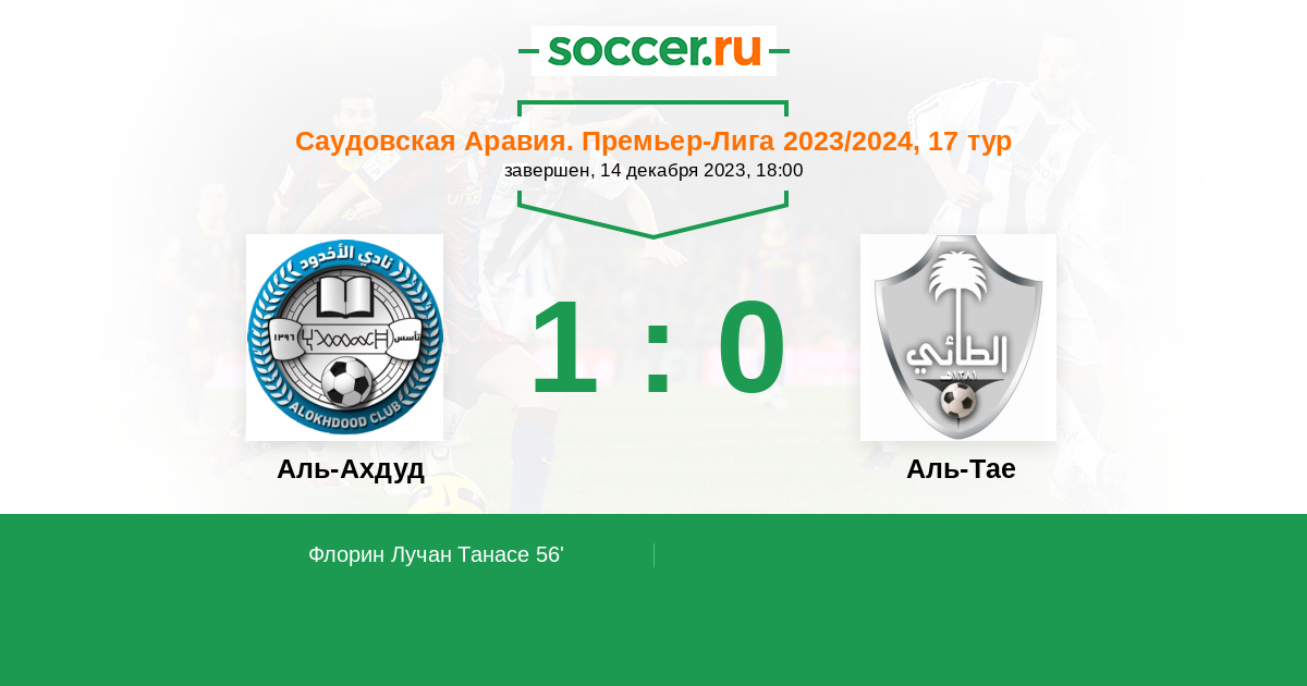 Протокол матча Аль-Ахдуд против Аль-Тае
