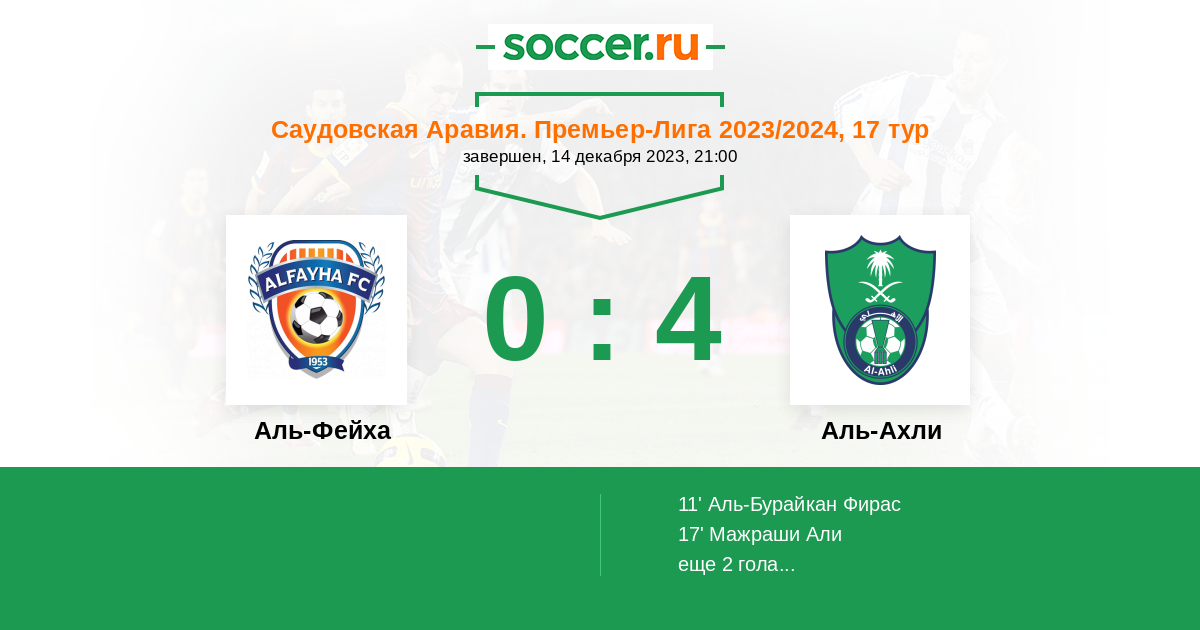 Протокол матча Аль-Фейха против Аль-Ахли