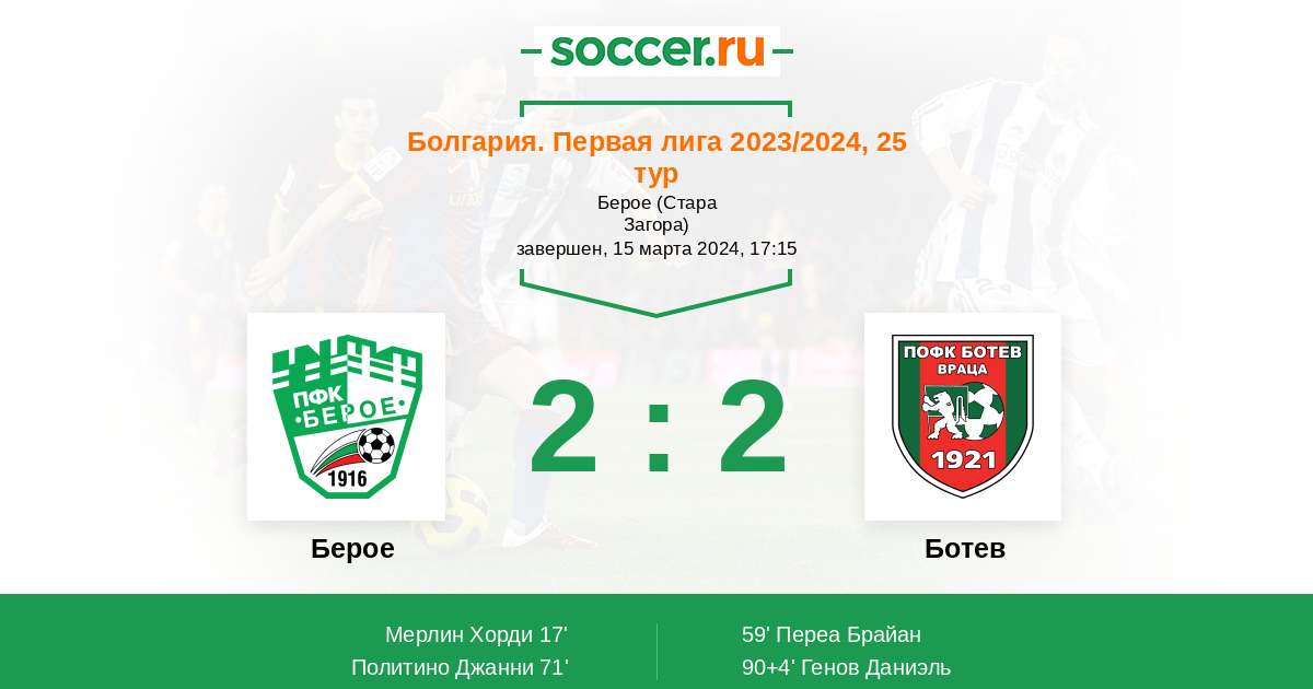 Протокол матча Берое против Ботев