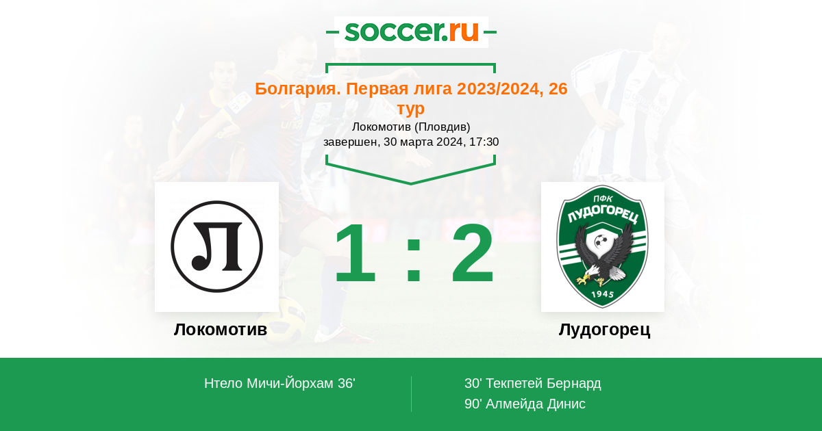 Протокол матча Локомотив против Лудогорец