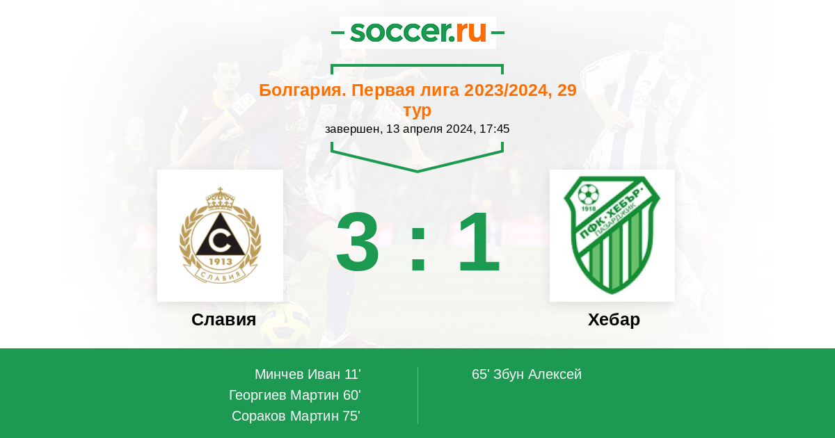 Протокол матча Славия против Хебар