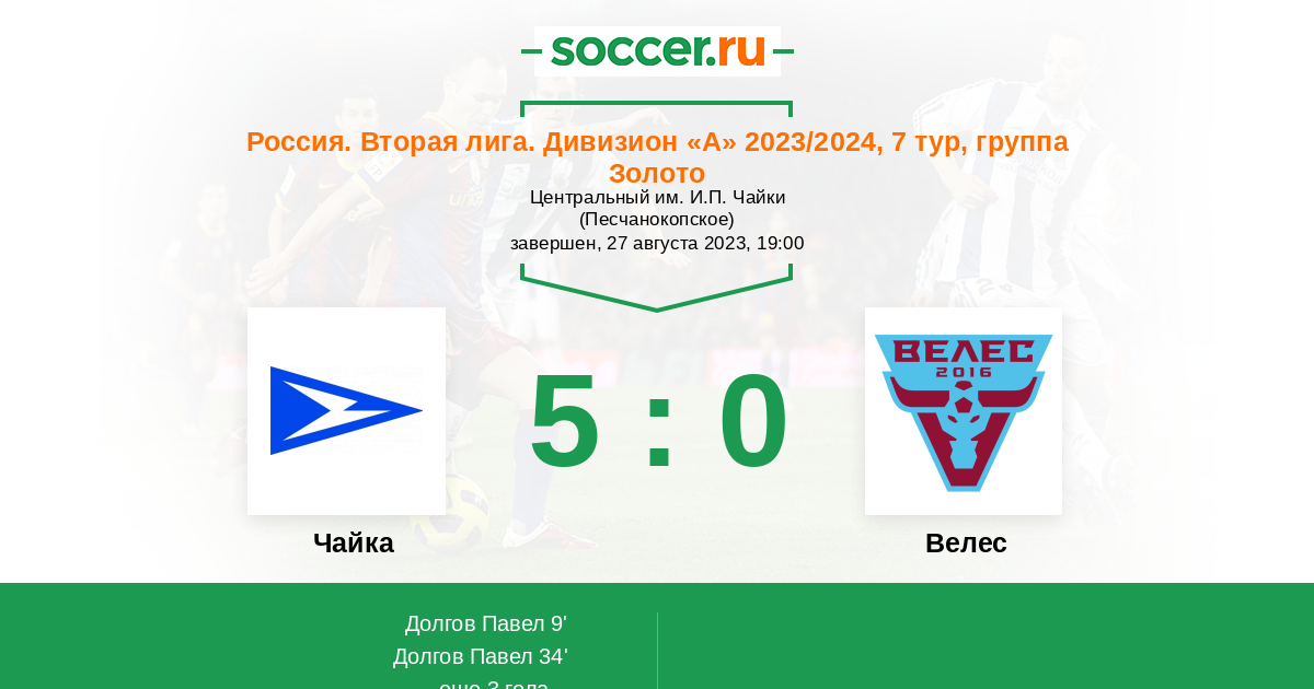 Протокол матча Чайка против Велес