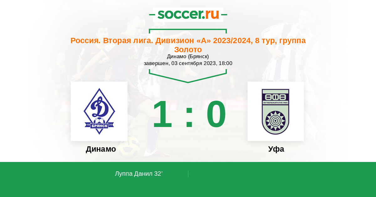Протокол матча Динамо Брянск против Уфа