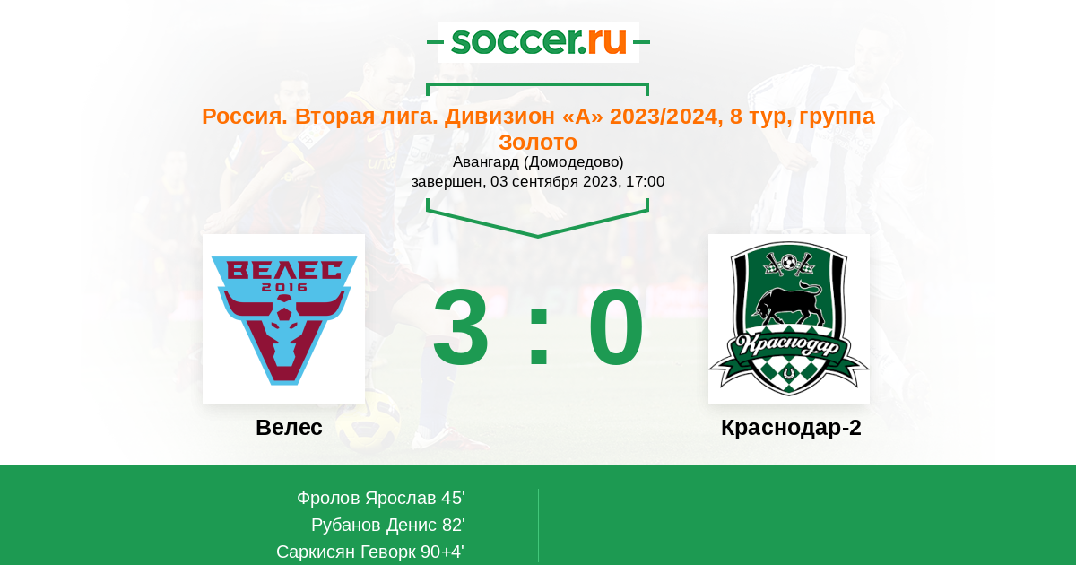 Протокол матча Велес против Краснодар-2
