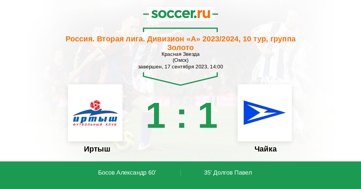 Протокол матча Иртыш против Чайка