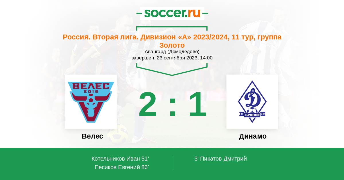 Протокол матча Велес против Динамо Брянск