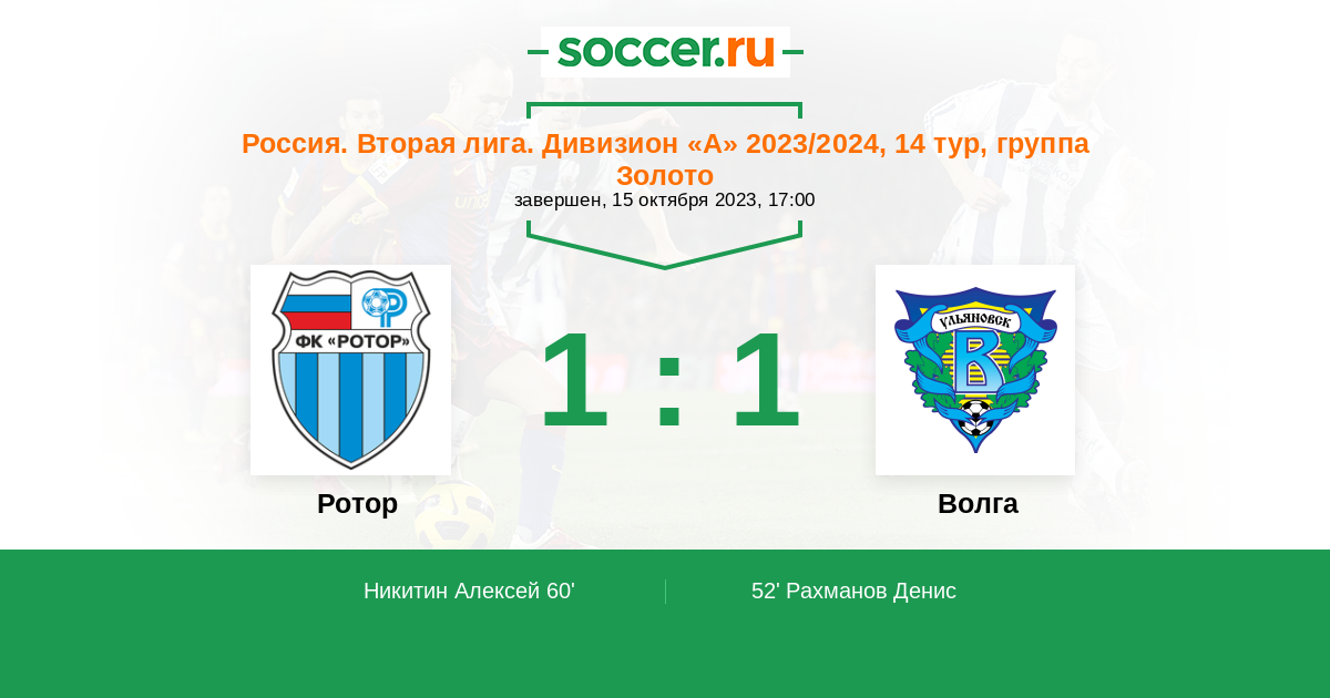 Протокол матча Ротор против Волга