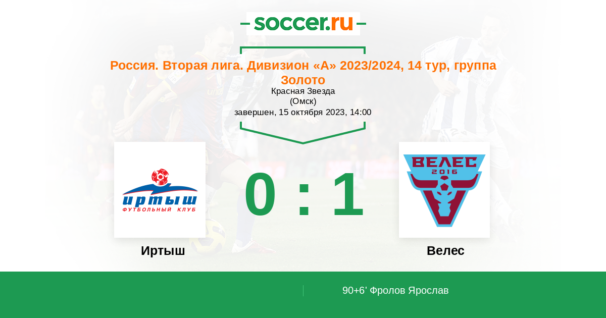 Протокол матча Иртыш против Велес