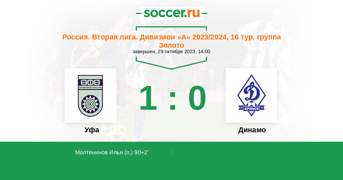 Протокол матча Уфа против Динамо Брянск