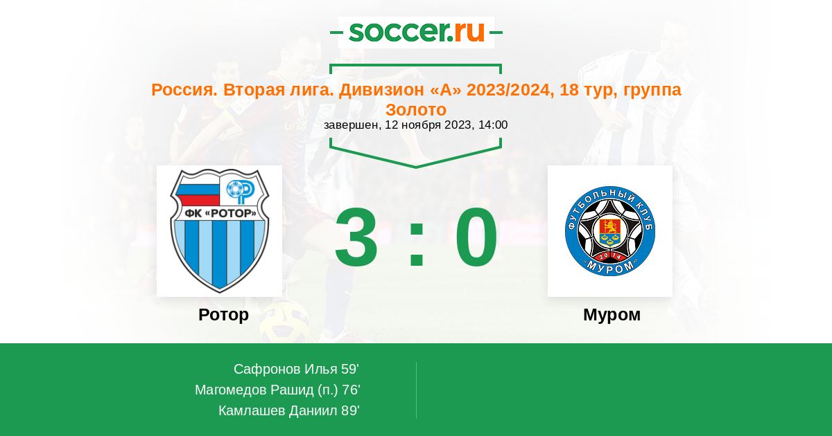 Протокол матча Ротор против Муром