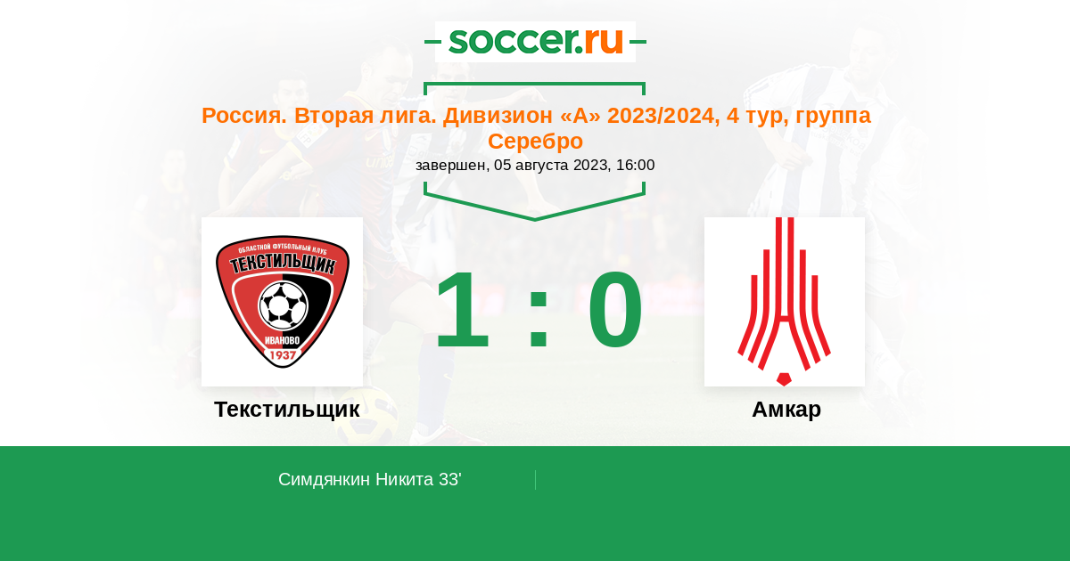 Протокол матча Текстильщик против Амкар