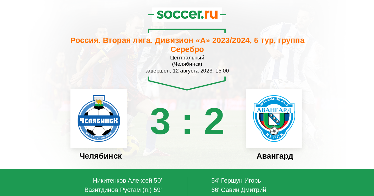 Протокол матча Челябинск против Авангард