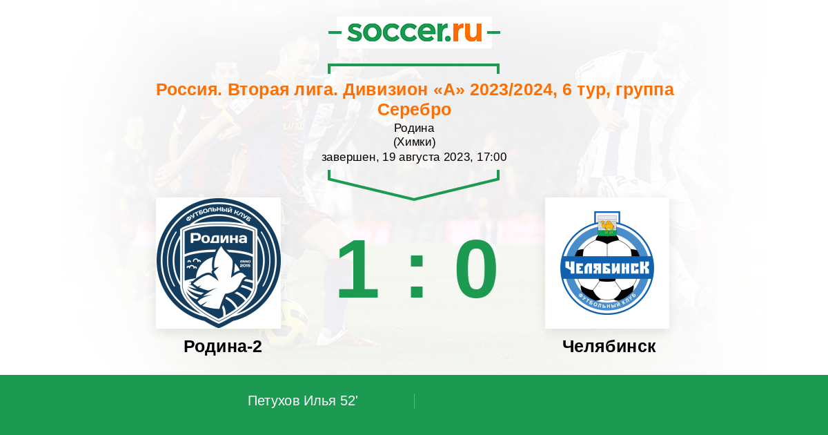 Протокол матча Родина-2 против Челябинск