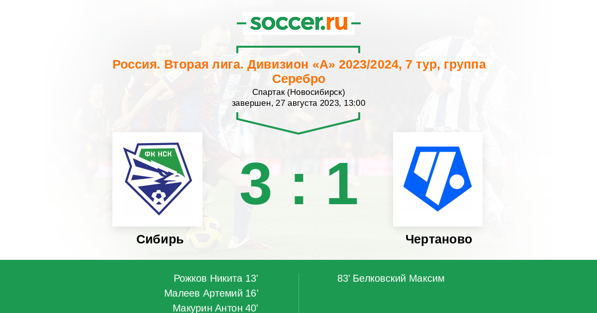 Протокол матча Сибирь против Чертаново