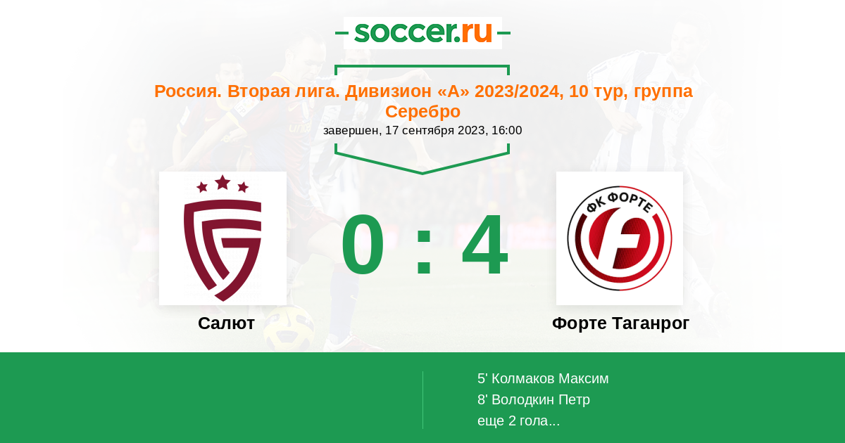 Протокол матча Салют против Форте Таганрог